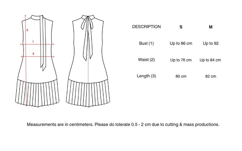 High neck collar dress with pleats detail on the bottom of the skirt. Dress is fully lined. Back zipper opening